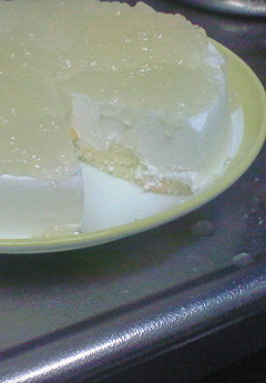 5.それをケーキ型(スポンジの上)に流し込みます